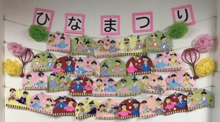 3月の壁面制作療育では、みんなで「おひなさま」を作りました。